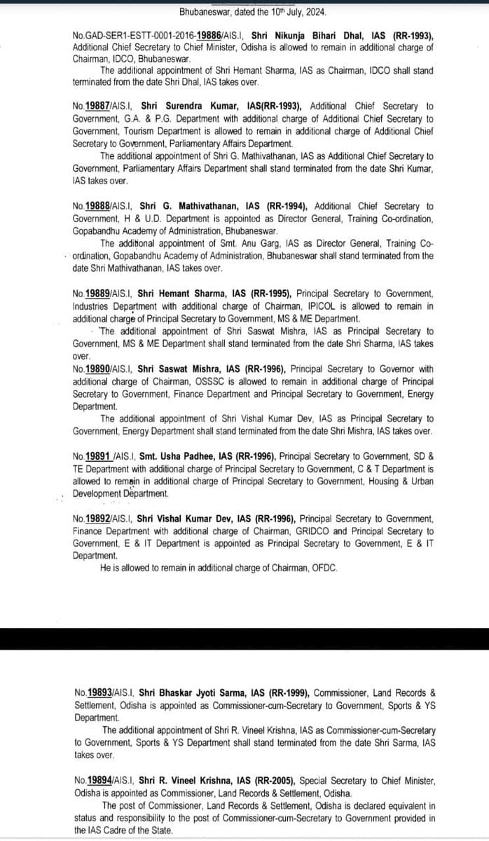 - मुख्यमंत्री के अतिरिक्त मुख्य सचिव (ACS) निकुंज बिहारी धल के पास IDCO के अध्यक्ष का अतिरिक्त प्रभार।