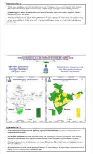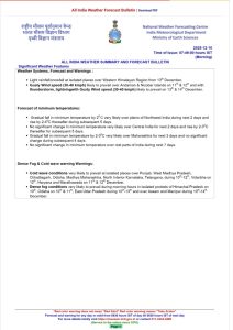 IMD ने कोहरे को लेकर विशेष अलर्ट जारी किया है। उत्तर भारत, मध्य यूपी, बिहार और पंजाब में अगले तीन दिनों तक घना कोहरा छाया रह सकता है, जिससे यात्रा और परिवहन व्यवस्था बाधित हो सकती है। इसके अलावा, बढ़ती ठंड और शीतलहर को देखते हुए विभाग ने बच्चों, बुजुर्गों और संवेदनशील लोगों को विशेष सावधानी बरतने की सलाह दी है। मौसम विभाग का अनुमान है कि सप्ताह के मध्य तक ठंड का यह दौर अपने चरम पर पहुंच सकता है।