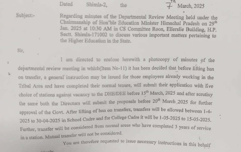 Himachal Pradesh News : हिमाचल प्रदेश के शिक्षकों और कर्मचारियों के लिए अच्छी खबर है। प्रदेश की सुक्खू सरकार ने स्कूलों और कॉलेजों में नया शैक्षणिक सत्र शुरू होते ही टीचर्स कर्मचारियों के तबादलों से बैन हटाने का फैसला लिया है।