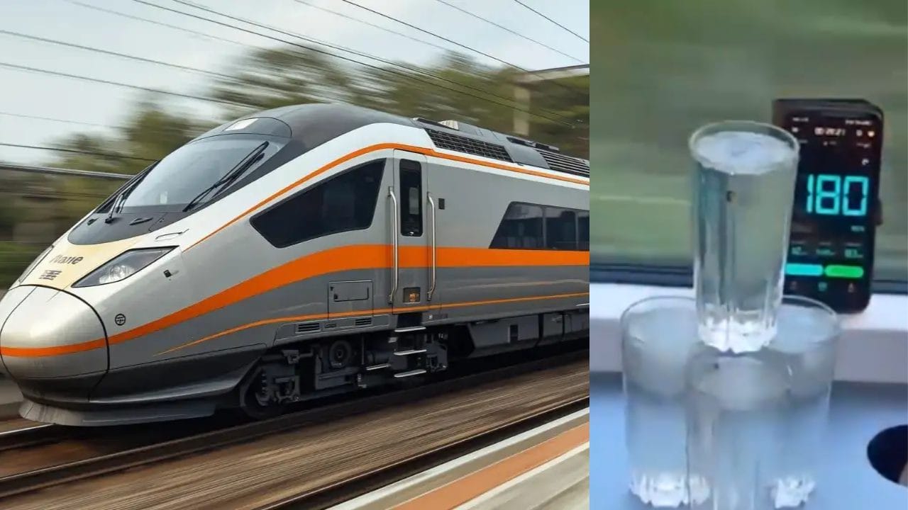 आप देख सकते हैं कि वीडियो में स्पष्ट नजर आ रहा है, जब वंदे भारत स्लीपर ट्रेन ट्रायल के दौरान 180 की स्पीड से पटरियों पर दौड़ रही थी, तब केबिन में मौजूद कर्मचारी इसका वीडियो बना रहा होता है। ट्रेन के केबिन में स्पीडोमीटर के ठीक सामने पानी की 4 गिलास रखी होती है। जिसमें पानी भरा होता है लेकिन 180 की रफ्तार में ट्रेन के दौड़ने के बावजूद भी एक बूंद भी पानी का छलकता नहीं है। वीडियो में आप देखेंगे कि ट्रेन की स्पीड स्पीडोमीटर में दिखाता है।