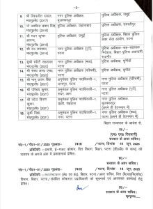 - अवकाश कुमार, वरीय पुलिस अधीक्षक को समादेष्टा, बिहार विशेष सशस्त्र पुलिस-1 पटना पद पर भेजा गया है।