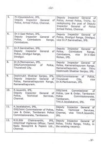 - डॉ वी. शशि मोहन को पुलिस उपमहानिरीक्षक डिंडीगुल रेंज पद पर नियुक्त किया गया है। डॉ पी. समीनाथन को कोयंबटूर उपमहानिरीक्षक पद पर भेजा गया है।