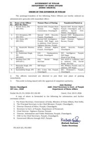 - कौशतब शर्मा, एडीजीपी मानवाधिकार को एडीजीपी सुरक्षा पंजाब चंडीगढ़ पद पर पदस्थ किया गया है।