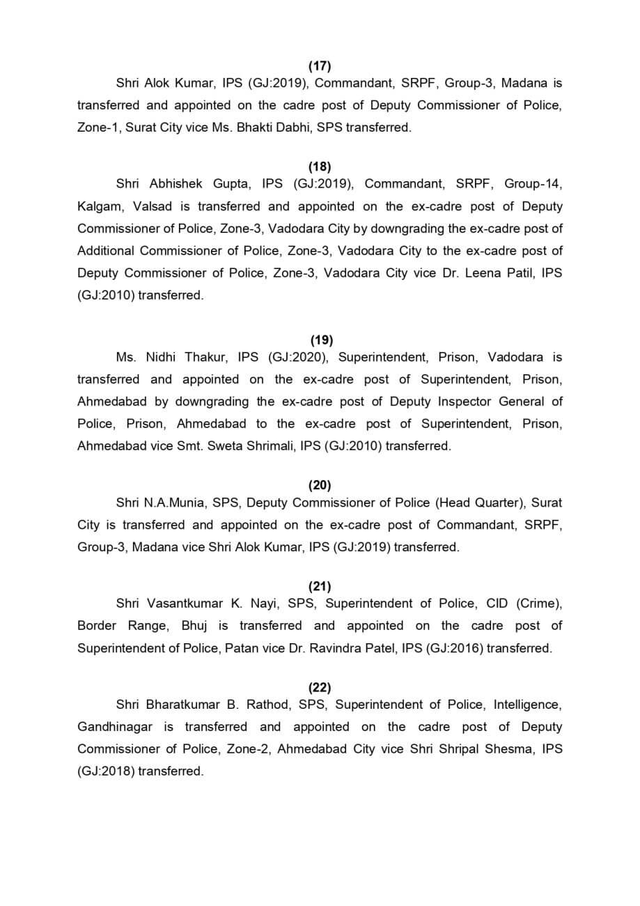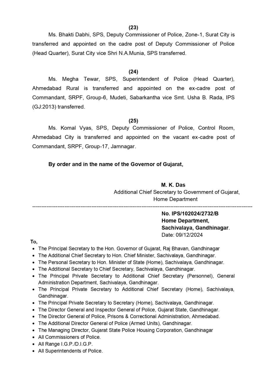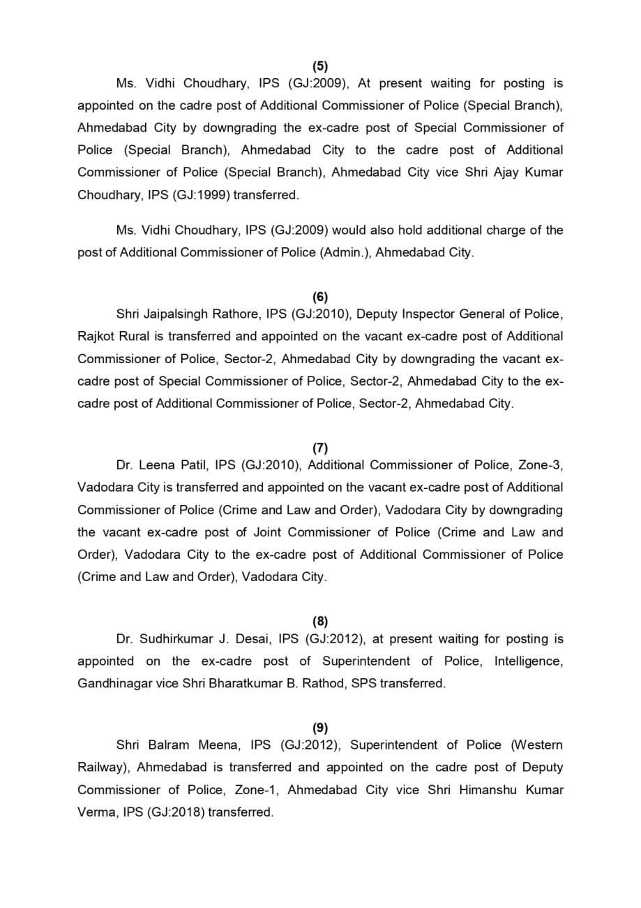- भक्ति डाभी को पुलिस उपायुक्त मुख्यालय सूरत ।लीना पाटिल को जेसीपी क्राइम एंड लॉ ऑर्डर ।
