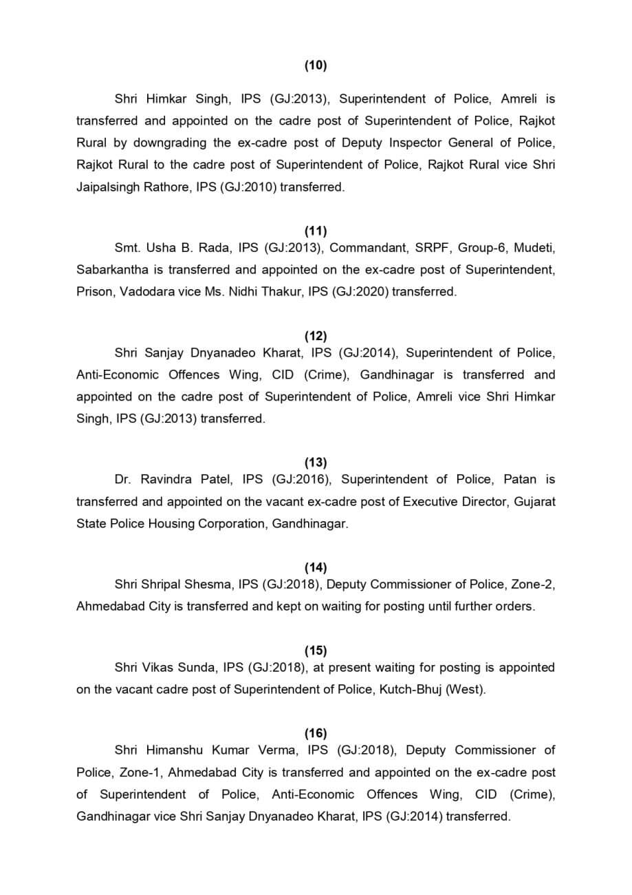 - डॉ. शमशेर सिंह, आईपीएस : अगले आदेश तक अहमदाबाद में भ्रष्टाचार निरोधक ब्यूरो के निदेशक के पद का अतिरिक्त प्रभार संभालते रहेंगे।