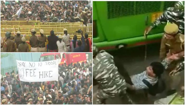 आंदोलन में आईसा, एआईएसएफ़ और एसएफ़आई सहित कई छात्र संगठन शामिल हैं। छात्रों के प्रदर्शन को रोकने के लिए भारी संख्या में सीआरपीएफ और दिल्ली पुलिस के जवान तैनात हैं. प्रदर्शन कर रहे कुछ छात्रों को जवानों ने टांगकर बस में बैठाया है।छात्रों का कहना है कि जब तक उनकी मांगें पूरी नहीं हो जातीं प्रदर्शन जारी रहेगा।