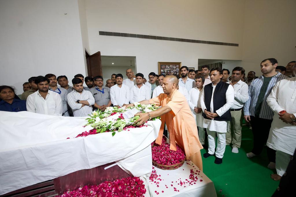 मुलायम यादव का अंतिम संस्कार सैफई के मेला ग्राउंड में किया गया। बता दें कि कल से रुक-रुक हो रही बारिश के बीच प्लेटफार्म बनाकर तैयार किया गया। इस काम को करने के लिए कई लोग रात भर जग कर मशीने चलाई। इस ग्राउंड परिसर के अंदर मंच और पंडाल दोनों बनाएं गए। बता दें कि मुखाग्नि देने से पहले वहां सभी ने उन्हें श्रद्धांजलि अर्पित की। इस दौरान हजारों की संख्या में लोग एकत्रित हुए थे और अपनी नम आंखों से धरतीपुत्र मुलायम यादव को विदाई दी।