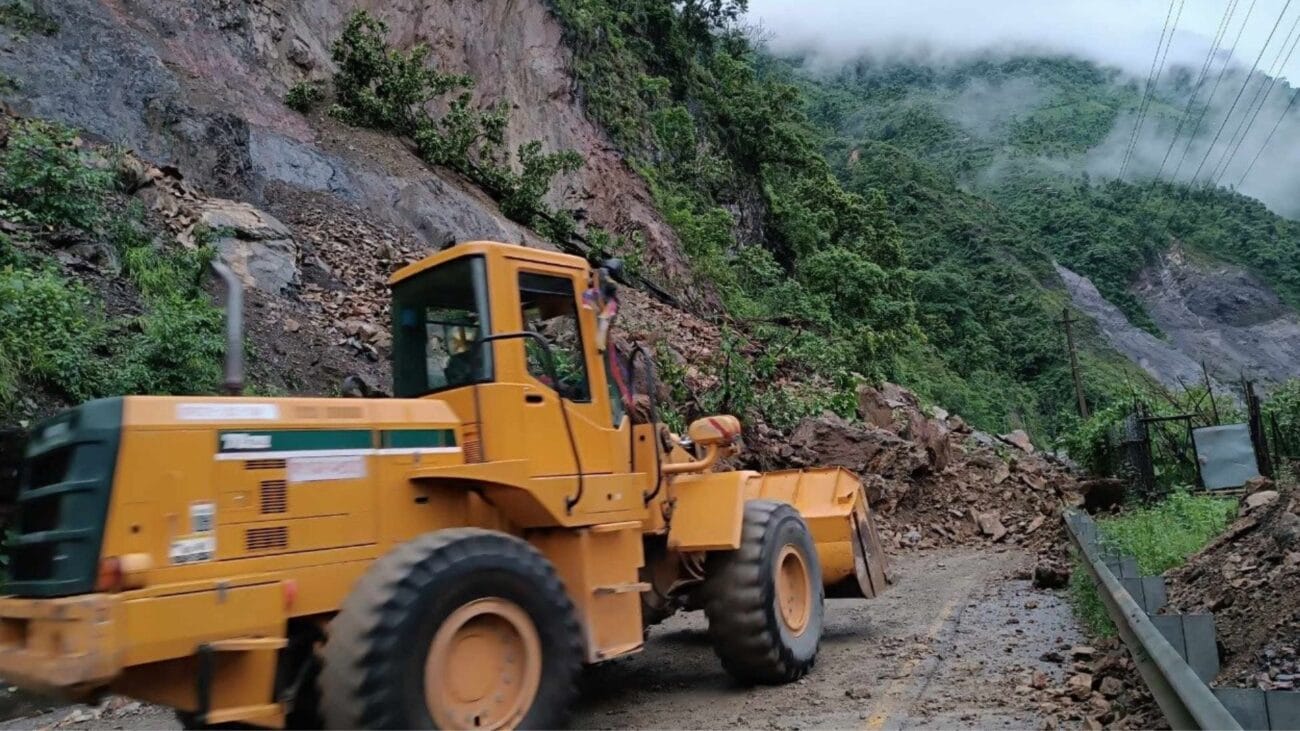 मूसलाधार बारिश के कारण के कारण पहाड़ में दरार