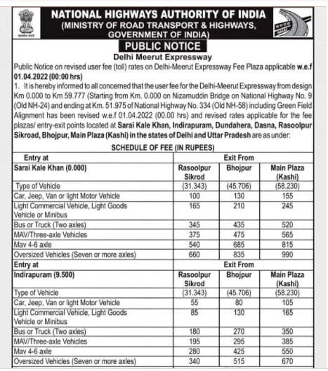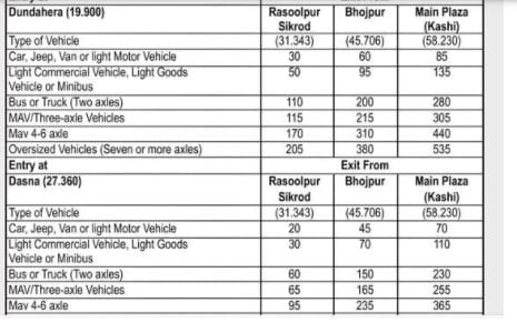 - सराय काले खां से रसूलपुर सीक्रोड प्लाजा तक टोल टैक्स 100 रुपए और भोजपुर के लिए 130 रुपए चुकाना होगा।