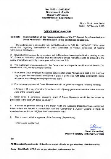 वित्त मंत्रालय ने 24 मार्च 2025 को एक सर्कुलर जारी कर बताया है कि जुलाई के बाद केंद्र सरकार की सेवा में शामिल होने वाले कर्मचारियों को इस भत्ते का लाभ मिलेगा। यानी अब भत्ता साल में एक से ज्यादा बार मिलेगा।