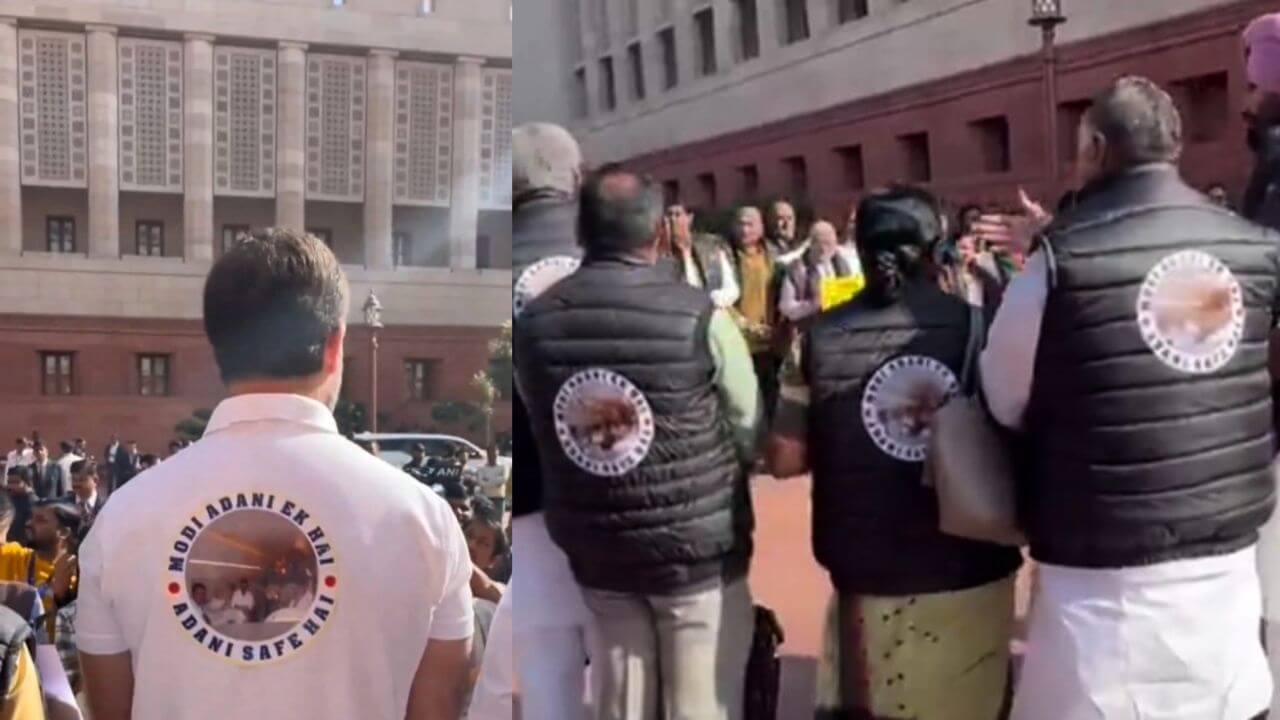संसद का शीतकालीन सत्र चल रहा है, आज आठवे दिन भी विपक्ष अडानी मुद्दे पर बात करने के लिए अड़ा रहा, विपक्ष ने विरोध करने का आज अलग ही तरीका अपनाया , राहुल गांधी प्रियंका गांधी सहित इंडी गठबंधन में शामिल कई विपक्षी सांसद काली जैकेट पहनकर संसद आये उसपर अंग्रेजी में लिखा था, “मोदी अडानी एक हैं, अडानी सेफ है।”