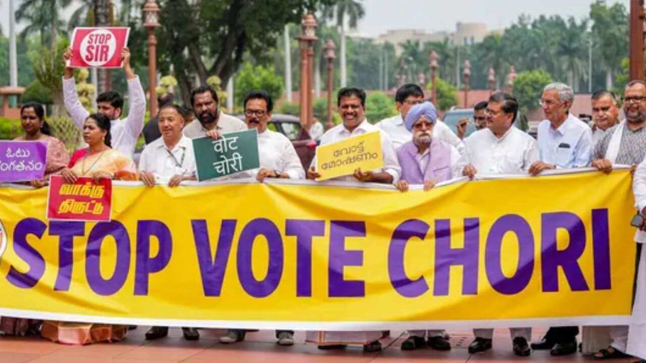 विपक्षी दलों ने सोमवार को संयुक्त बयान जारी कर निर्वाचन आयोग की प्रेस कॉन्फ्रेंस की आलोचना की। कांग्रेस, समाजवादी पार्टी, टीएमसी, शिवसेना (यूबीटी), डीएमके, एनसीपी (एससीपी), आरजेडी, आप, जेएमएम, सीपीआई, सीपीआई(एम), सीपीआई(एमएल) सहित अन्य दलों ने दावा किया कि आयोग अपने संवैधानिक कर्तव्यों को निभाने में पूरी तरह विफल रहा है। बयान में कहा गया कि मुख्य निर्वाचन आयुक्त ज्ञानेश कुमार ने रविवार को प्रेस कॉन्फ्रेंस में कठिन सवालों का जवाब देने से इनकार कर दिया।