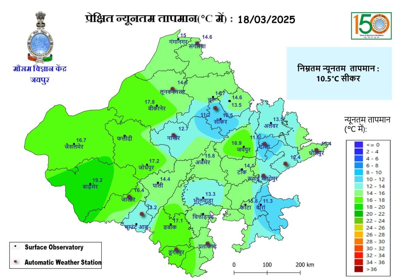 Rajasthan Weather: राजस्थान के मौसम में फिर बदलाव होने वाला है। हरियाणा और उत्तर-पूर्वी उत्तर प्रदेश के आसपास सक्रिय पश्चिमी विक्षोभ के प्रभाव से 19 और 20 मार्च को प्रदेश के उत्तरी और पूर्वी हिस्से में बादल छाने के साथ बारिश की संभावना जताई गई है।अगले 3 दिन रात के वक्त न्यूनतम तापमान में 2 डिग्री तक गिरावट होने के आसार हैं।