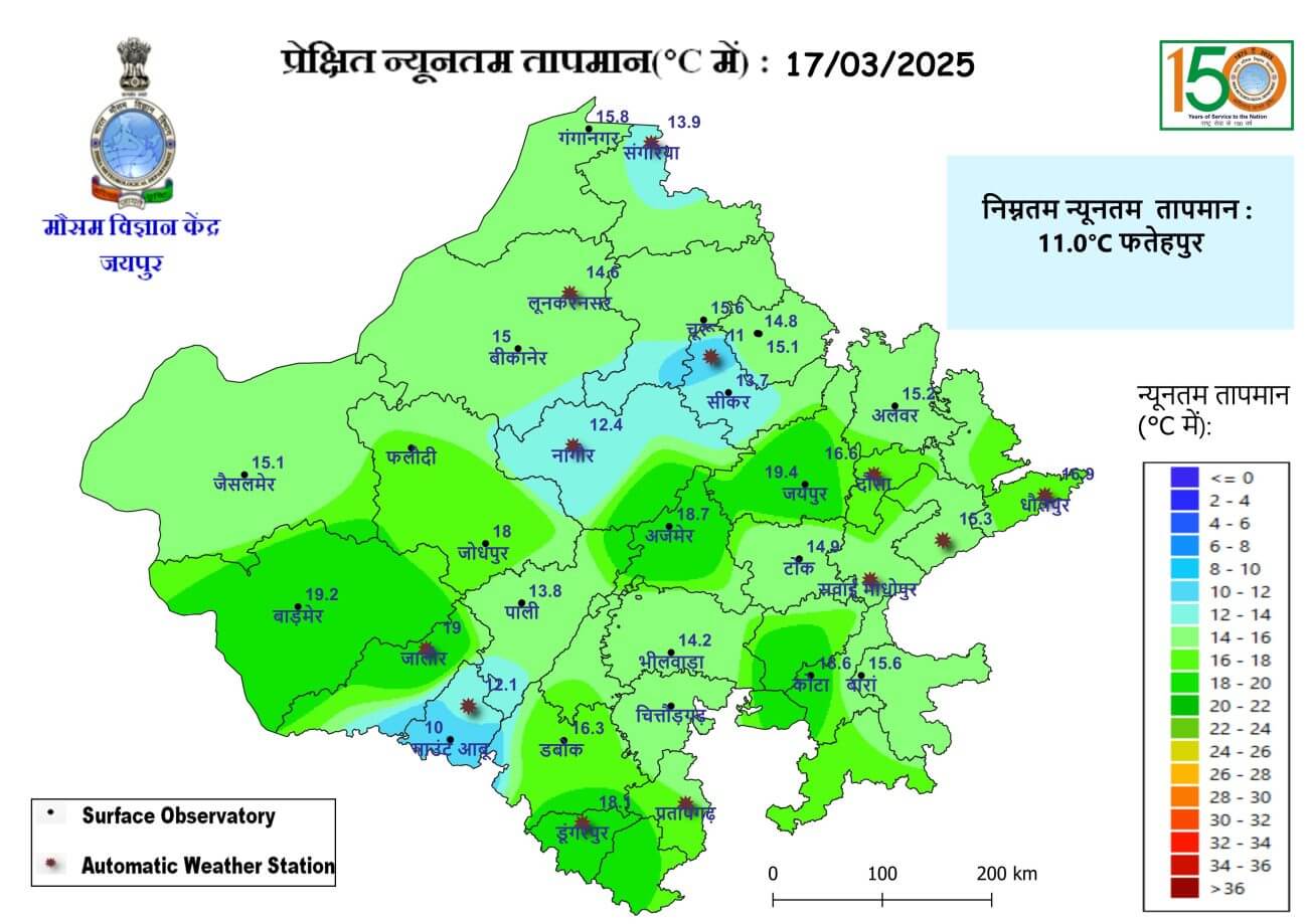 - सीकर, हनुमानगढ़, और श्रीगंगानगर में तापमान 30 डिग्री सेल्सियस से कम रहा।