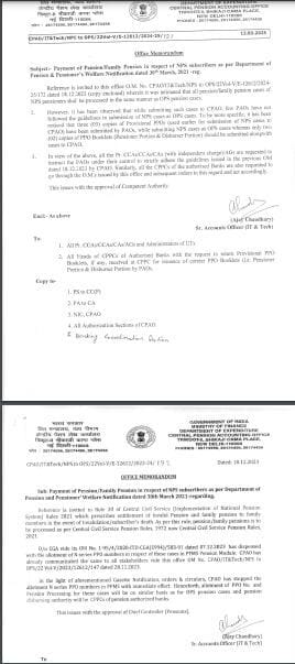 12 मार्च 2025 के मेमो में सीपीएओ ने दोहराया कि नेशनल पेंशन सिस्टम (NPS) मामलों के लिए OPS जैसी ही प्रक्रिया अपनाई जाए, जैसा की 18 दिसंबर 2023 को निर्देशित किया गया था।सीपीएओ ने पेंशन प्रक्रिया में शामिल अधिकारियों को याद दिलाया है कि वे OPS के लिए निर्धारित प्रक्रियाओं का ही पालन करें। यह निर्देश पहले 18 दिसंबर 2023 को भी दिया गया था। इसके बावजूद कुछ वेतन और लेखा कार्यालय (PAO) अभी भी पेंशन मामलों को गलत तरीके से काम कर रहे हैं।