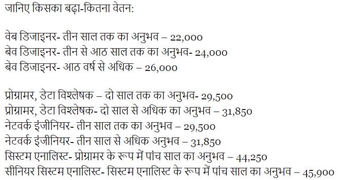 मीडिया रिपोर्ट्स के अनुसार, सूचना प्रौद्योगिकी विभाग द्वारा प्रशासनिक सचिवों, विभागाध्यक्ष, मंडलायुक्त, बोर्ड-निगमों के चेयरमैन और प्रशासक तथा हाई कोर्ट व विश्वविद्यालयों के रजिस्ट्रार को जारी पत्र में कहा गया है कि संशोधित वेतनमान पहली अप्रैल 2020 से लागू होगा। दूरस्थ शिक्षा (Education) से एमसीए और एमटेक डिग्री करने वाले कर्मचारियों के मामले में हारट्रोन सुनिश्चित करेगा कि अखिल भारतीय तकनीकी शिक्षा परिषद से इसे मान्यता मिली हो।
