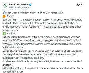 “सलमान खान के नाम किसी आधिकारिक नोटिफिकेशन, NACTA की सूची या गृह मंत्रालय के गजट में कोई प्रविष्टि नहीं है। यह दावा असत्य है और वायरल पत्र संशोधित प्रतीत होता है।” — फैक्ट-चेक यूनिट, सूचना एवं प्रसारण मंत्रालय, पाकिस्तान
