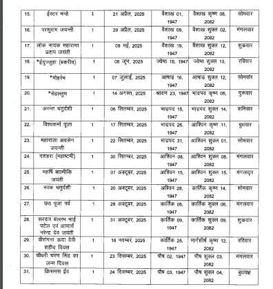 साल 2025 में निर्बंधित अवकाश की लिस्ट
