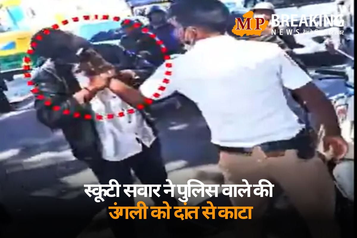scooter rider bit the policeman’s finger: बिना हेलमेट के स्कूटी चलाने पर ट्रैफिक पुलिस द्वारा रोके जाने पर सोमवार को एक व्यक्ति ने पुलिस वाले की उंगली को दांत से काट लिया। जानकारी के अनुसार 28 वर्षीय सय्यद सफी को बिना हेलमेट के चलाते हुए जब पुलिस ने रोका था, और पुलिस वाले ने चाबी छीनने की कोशिश की तो व्यक्ति ने पुलिस वाले की उंगली को दांत से काट लिया। इसके बाद पुलिस ने संदिग्ध को गिरफ्तार कर लिया है।