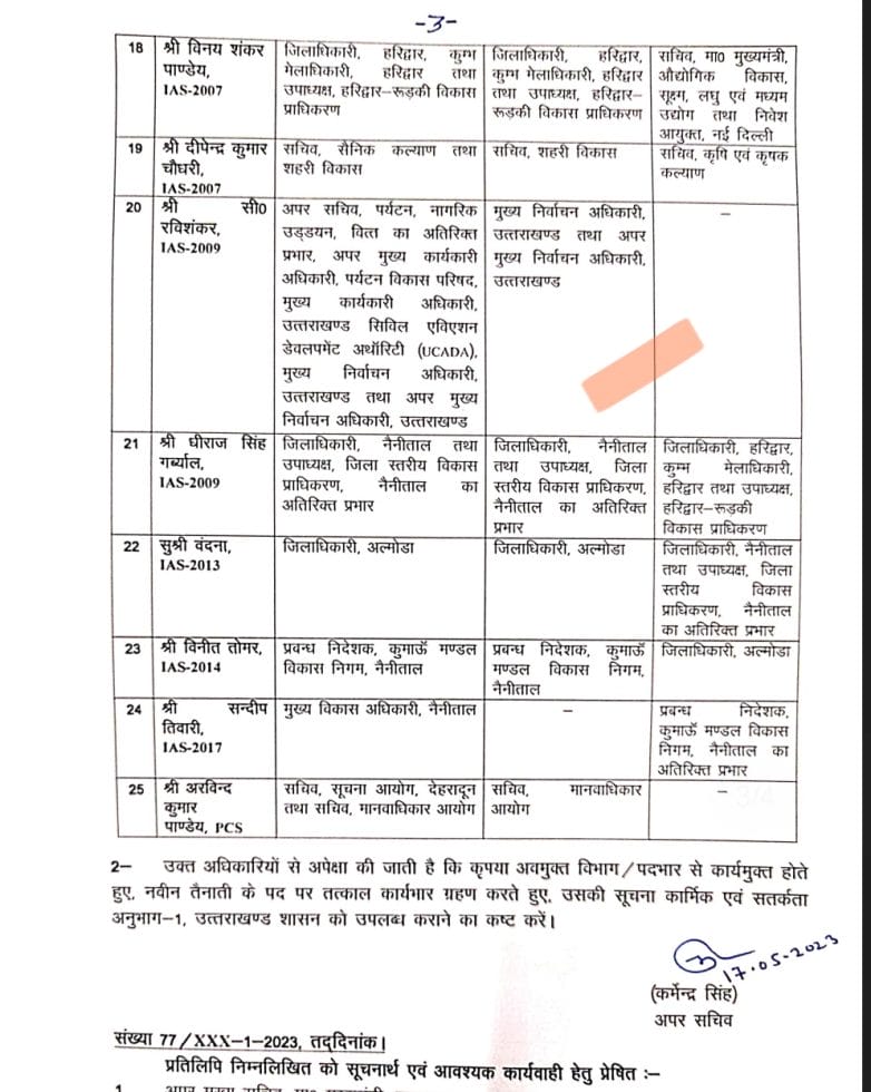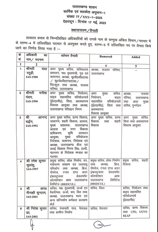 उत्तराखंड सरकार द्वारा कई वरिष्ठ आईएएस अधिकारियों को नवीन पदस्थापना सौंपी गई है। तत्काल प्रभाव से सभी को पदभार ग्रहण करना होगा। 24 आईएएस सहित एक पीसीएस अधिकारी को नवीन पदस्थापना सौंपी गई है।