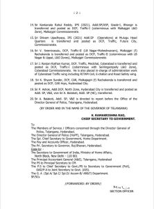- एस. शेषाद्रिणी रेड्डी को स्थानांतरित करके डीसीपी ट्रैफिक-2 (कुकटपल्ली और कुतुबुल्लापुर एल एंड ओ जोन के साथ) साइबराबाद कमिश्नरी के पद पर पदस्थ किया गया है।