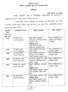 आईएएस अधिकारी राजीव रंजन को जिला दंडाधिकारी एवं उपायुक्त पूर्वी सिंहभूम, जमशेदपुर के पद पर नियुक्त किया गया है। संदीप कुमार, सचिव, झारखंड लोक सेवा आयोग को स्थानांतरित करके लातेहार के जिला दंडाधिकारी एवं उपायुक्त पद की जिम्मेदारी सौंपी गई है। गुमला के डीएम पद पर दिलेश्वर महतो को नियुक्त किया गया है।