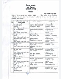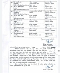 शिवहर के डीएसपी (हेडक्वाटर) शशि शंकर कुमार को कटिहार सदर के अनुमंडल पुलिस पदाधिकारी के रूप में नियुक्ति किया गया है। मधेपुरा के उदाकिशनगंज SDPO सतीश कुमार को गया से वजीरगंज समान पोस्ट पर पदस्थापित किया गया है। वहीं पटना विधि व्यवस्था के डीएसपी नरुल हक अब बिहारशरीफ (नालंदा) का अनुमंडल पुलिस पदाधिकारी पद की जिम्मेदारी संभालेंगे।वैशाली पुलिस उपाधीक्षक जय प्रकाश सिंह को नरकटियागंज (बेतिया) के अनुमंडल पुलिस पदाधिकारी के रूप में पदस्थापित किया गया है। बिहार पटना विशेष शाखा के पुलिस उपाधीक्षक विनय कुमार राय बलिया बेगूसराय की कमान अनुमंडल पुलिस पदाधिकारी के रूप में संभालेंगे।