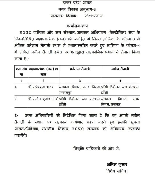 UP/Dehradun Transfer News : उत्तर प्रदेश और उत्तराखंड में अलग अलग विभागों के अधिकारियों के तबादलो का दौर जारी है। एक तरफ जहां उत्तर प्रदेश में 2 जीएम राधेश्याम यादव और मनोज कुमार आर्य के तबादले किए गए है, इस संबंध में नगर निगम अनुभाग ने आदेश जारी कर दिए है।वही दूसरी तरफ देहरादून में सीनियर एसएसपी अजय सिंह ने 7 उपनिरिक्षकों के तबादले कर दिए है। सात में से चार चौकी प्रभारियों की जिम्मेदारी बदली गई है।सभी उपनिरीक्षकों को निर्देशित किया गया है कि सभी तत्काल नवनियुक्ति स्थान के लिए जाए और ज्वाइन करें।