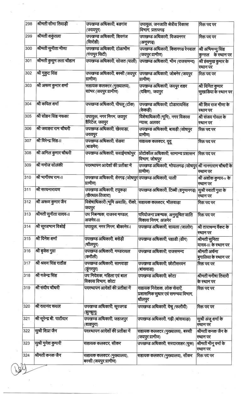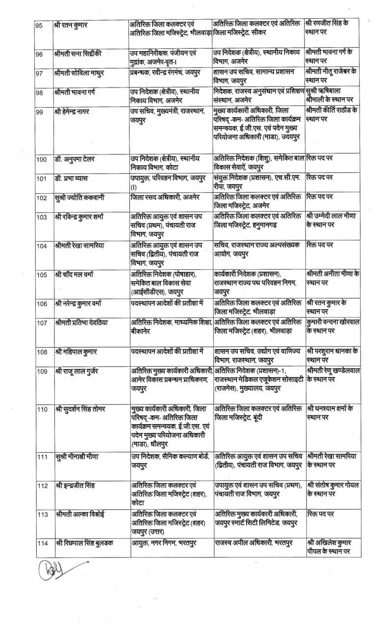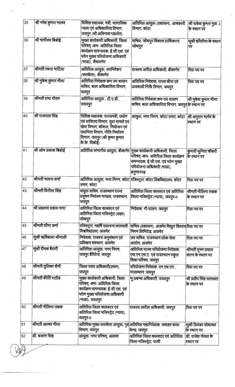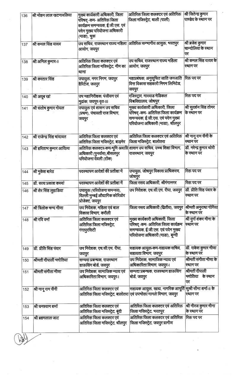 - जगवीर सिंह को मुख्यमंत्री का संयुक्त सचिव, बृजेश चांदोलिया को पंचायतीराज का अतिरिक्त आयुक्त व संयुक्त सचिव , भंवरलाल मेहरड़ा को हरिदेव जोशी पत्रकारिता विवि का रजिस्ट्रार की जिम्मेदारी दी गई है।