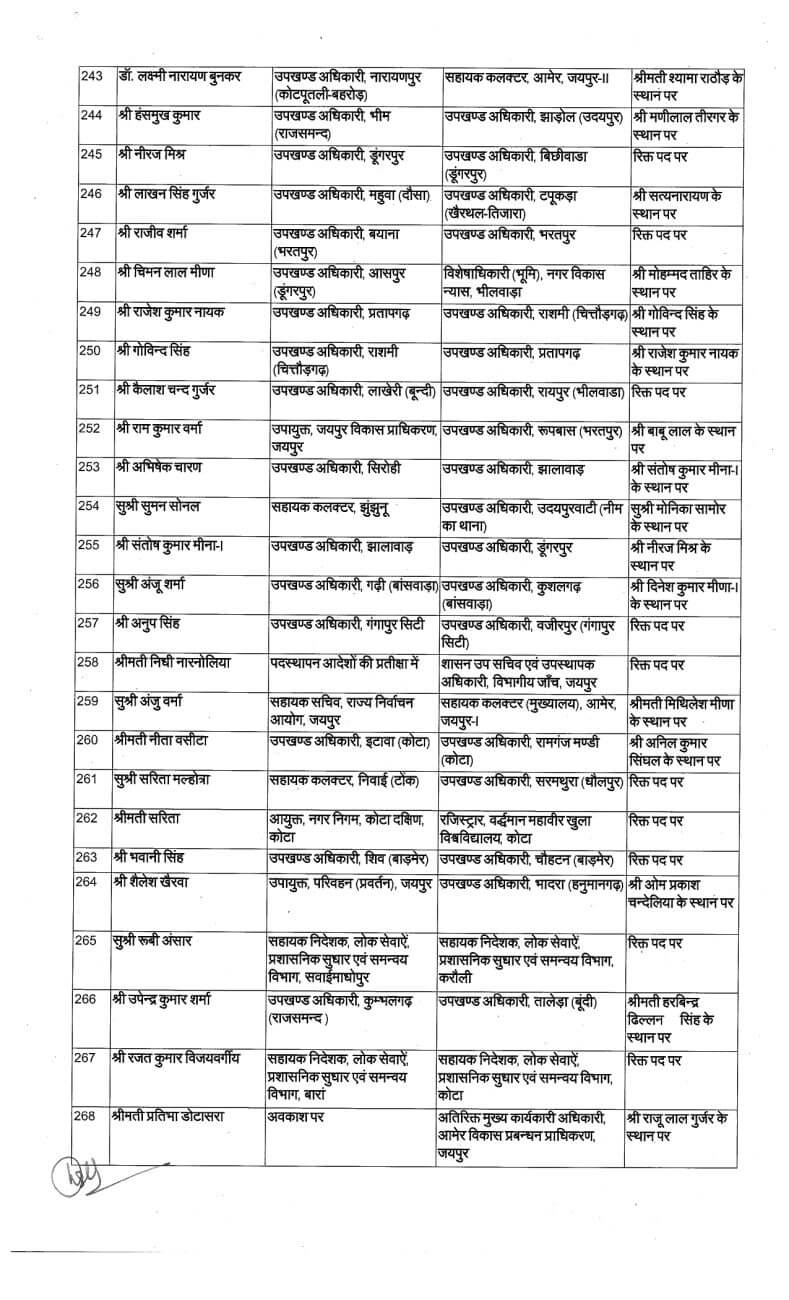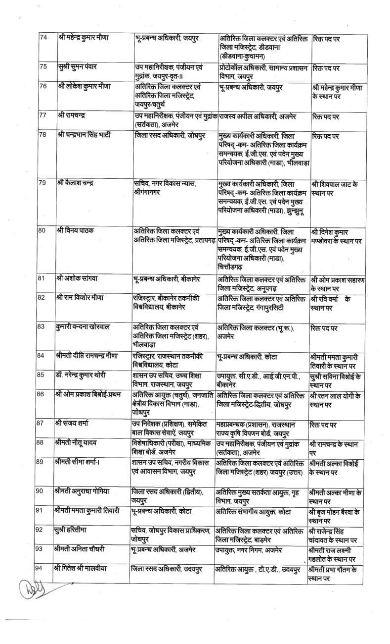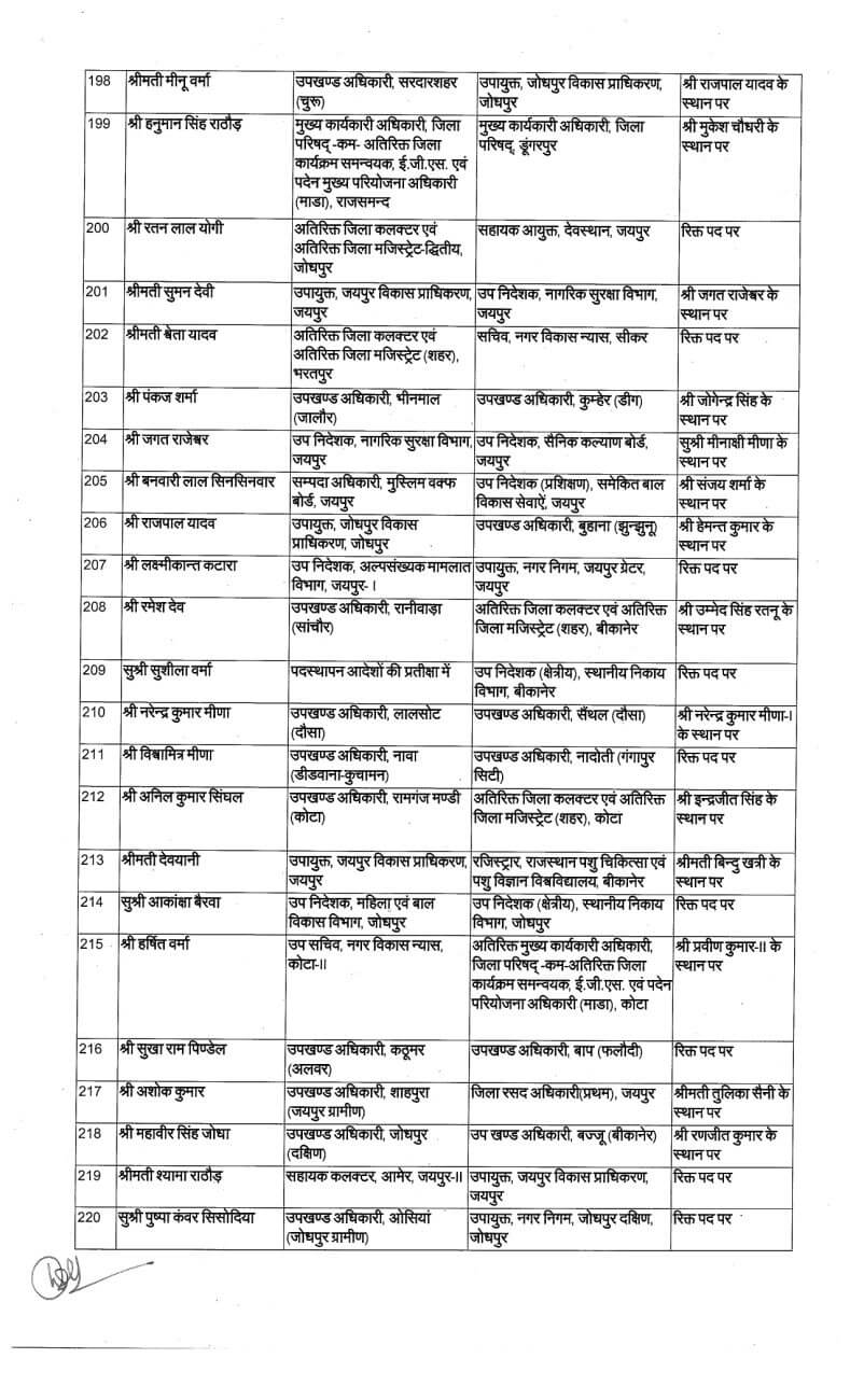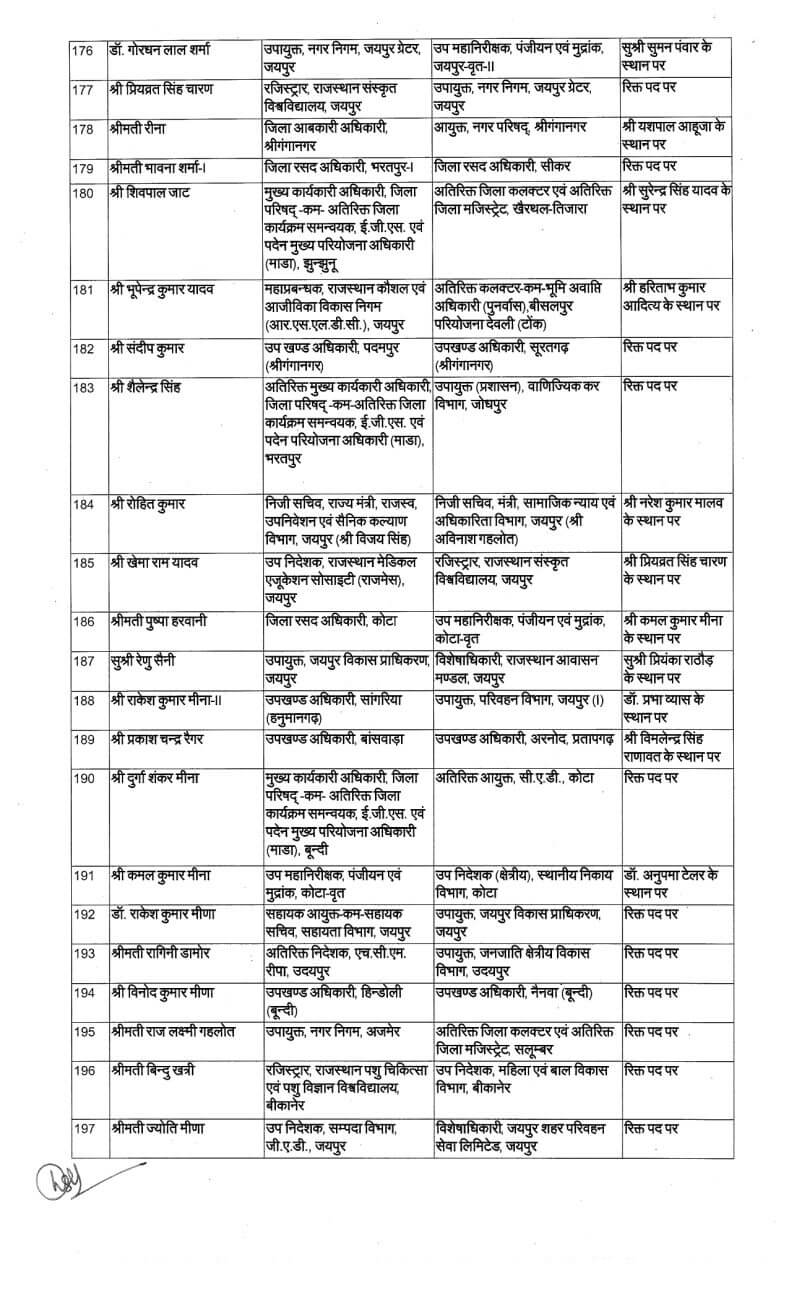 - आदेश के तहत डॉ. राकेश कुमार शर्मा को भाषा एवं पुस्तकालय विभाग का निदेशक ,सुरेश चन्द्र को राजस्थान आवासन मंडल का सचिव,अवधेश सिंह सिविल एविएशन के निदेशक बनाया है।