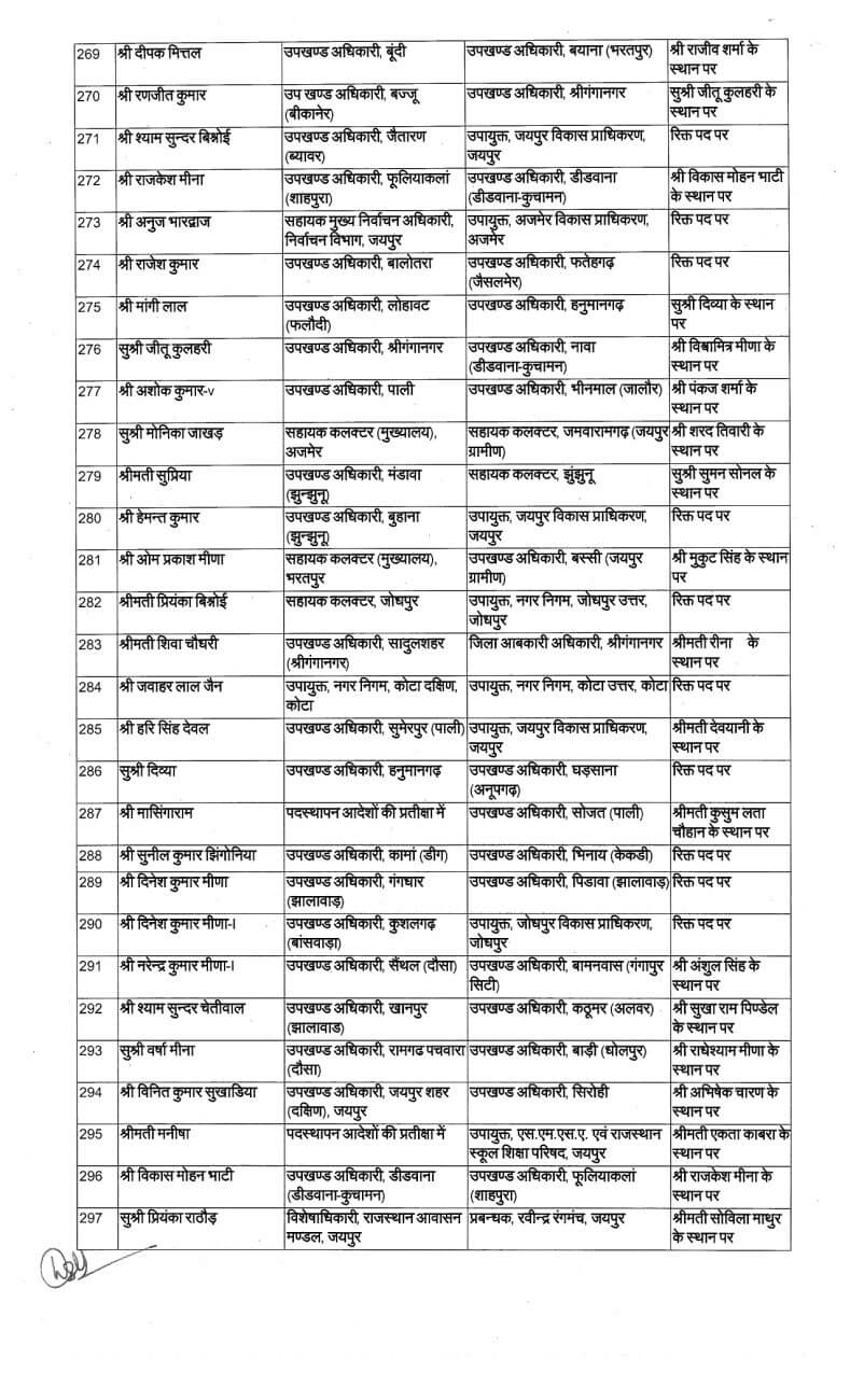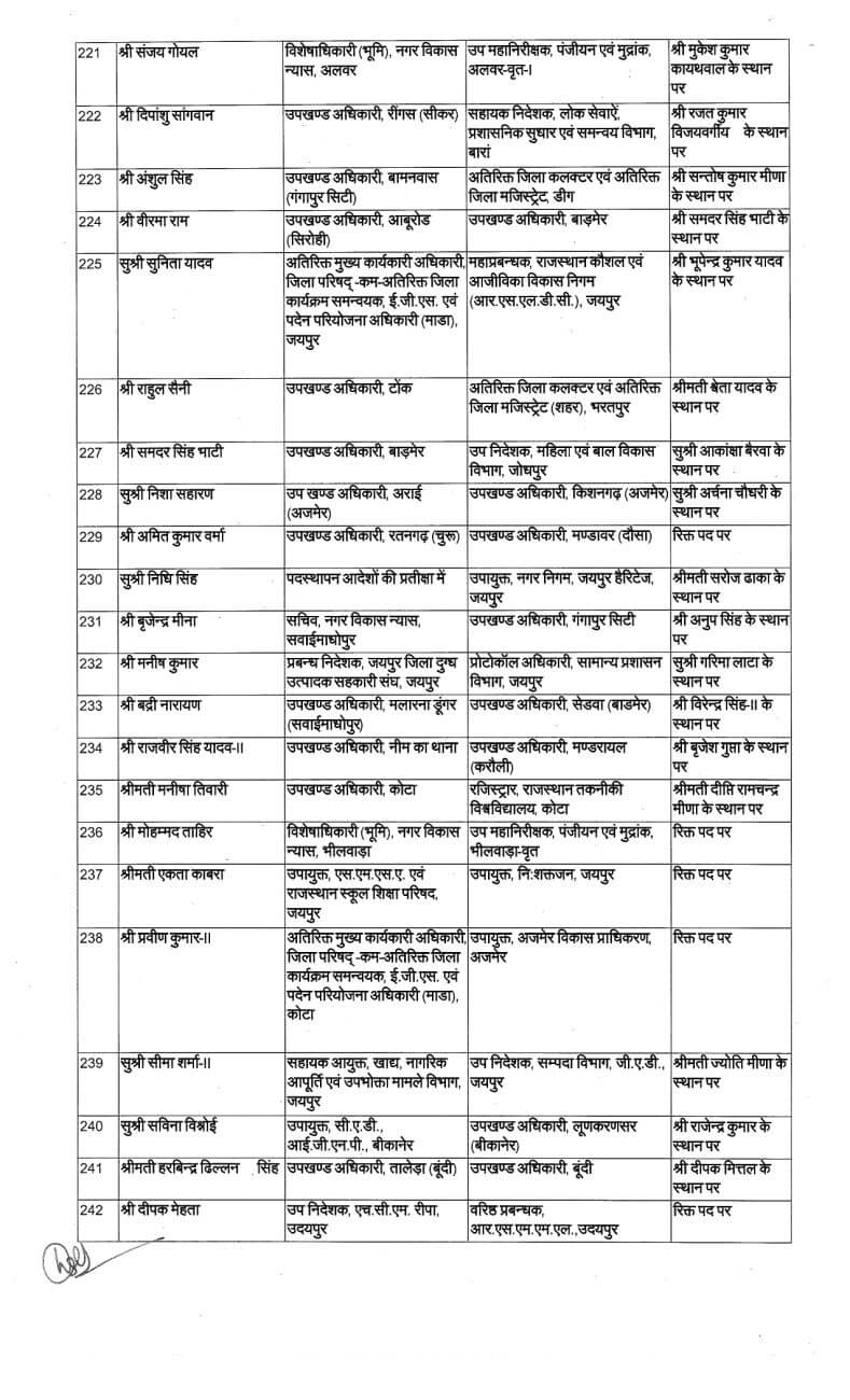 - रामस्वरूप को इंदिरा गांधी पंचायतीराज संस्थान का अतिरिक्त निदेशक, सुनीता चौधरी को माध्यमिक शिक्षा बीकानेर का अतिरिक्त निदेशक ,प्रियंका जोधावत को संयुक्त शासन सचिव बनाया गया है।