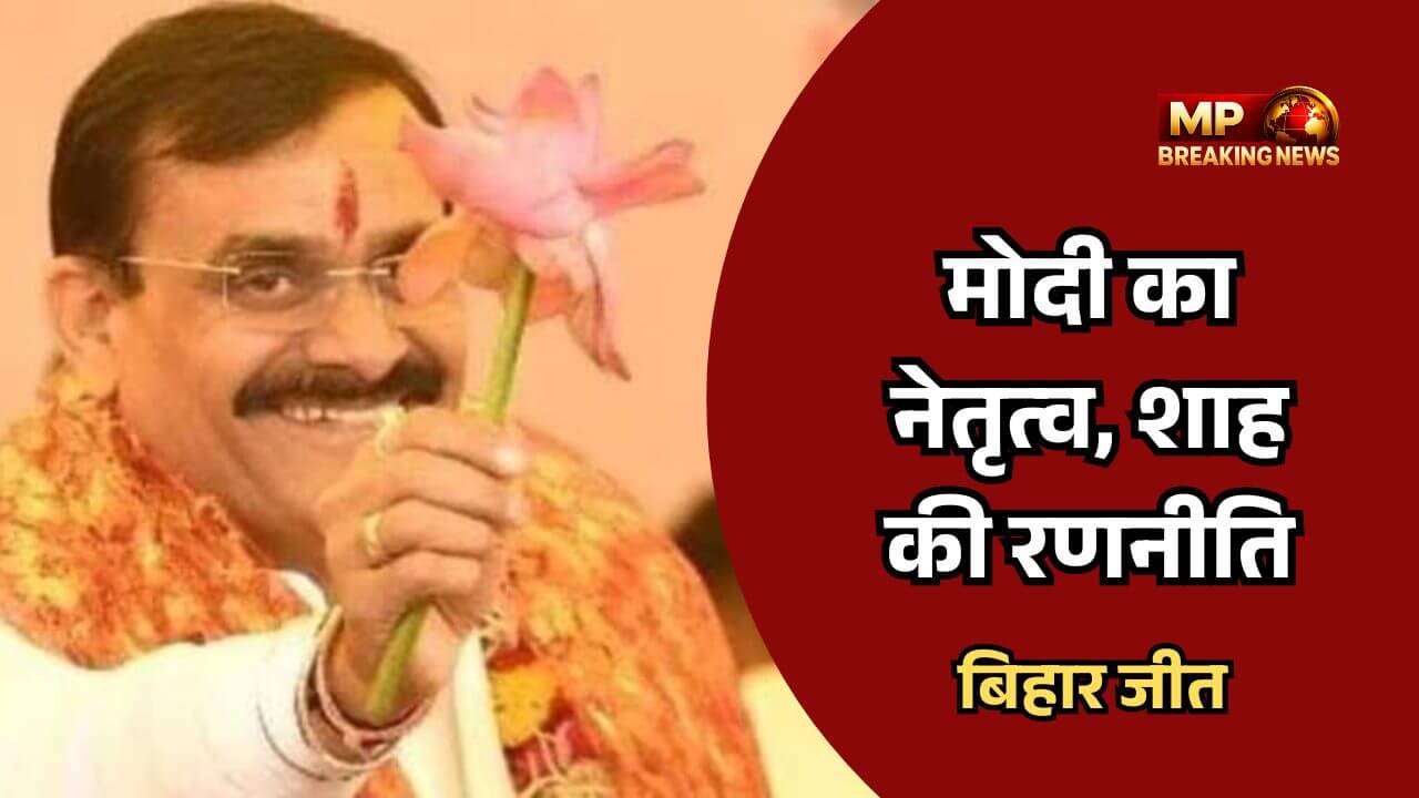 विष्णुदत्त शर्मा ने बिहार में मिली इस सफलता का श्रेय पार्टी के शीर्ष नेताओं को दिया। उन्होंने अपने पोस्ट में लिखा कि यह प्रधानमंत्री नरेंद्र मोदी के नेतृत्व, गृह मंत्री अमित शाह की रणनीति और भाजपा के राष्ट्रीय अध्यक्ष जेपी नड्डा के संगठनात्मक कौशल का संयुक्त परिणाम है।