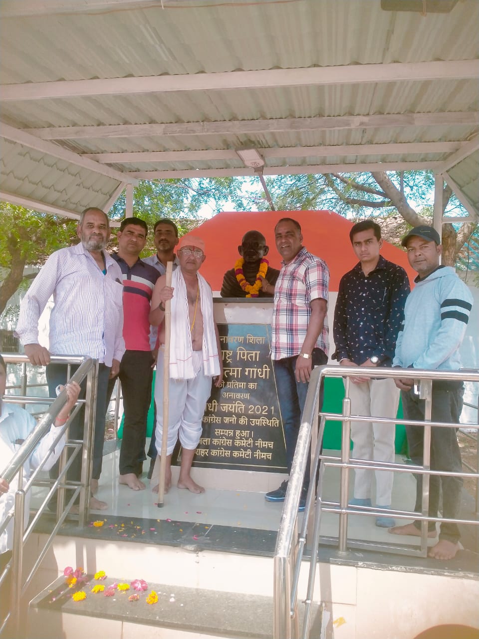 गांधी प्रतिमा के सामने बापू की वेशभूषा
