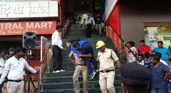 जबलपुर| शहर में स्थित मॉल में अचानक भूकंप का अलार्म बजा और अफरा तफरी मच गई| तत्काल एनडीआएफ की टीम ने मोर्चा संभाला और रेस्क्यू करते हुए लोगों को मॉल से सुरक्षित बाहर निकाला| इस दौरान अफरा तफरी का माहौल रहा| लोग इसको देखकर हैरान थे, कि तभी पता चला यह एक मॉक ड्रिल था| ऐसी इमरजेंसी में आपदा से निपटने के लिए एनडीआरएफ की टीम ने अन्य बचाव दल के साथ मॉक ड्रिल को अंजाम दिया|