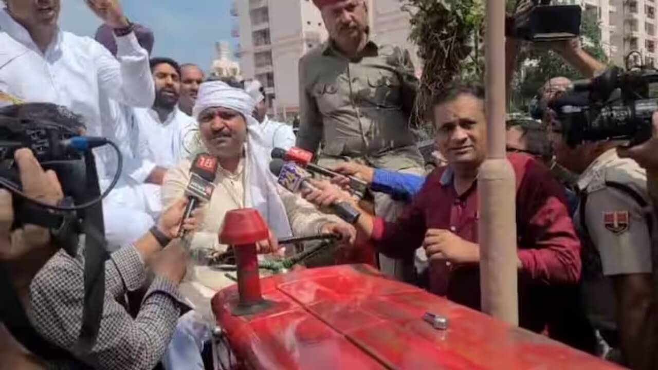 ट्रैक्टर पर विधानसभा पहुंचे नेता प्रतिपक्ष