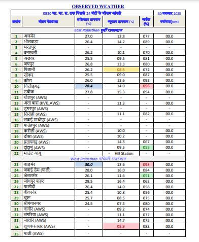 - वर्तमान में जयपुर, जोधपुर, बीकानेर और उदयपुर जैसे प्रमुख शहरों में न्यूनतम तापमान 10 से 12 डिग्री सेल्सियस के बीच बना हुआ है।