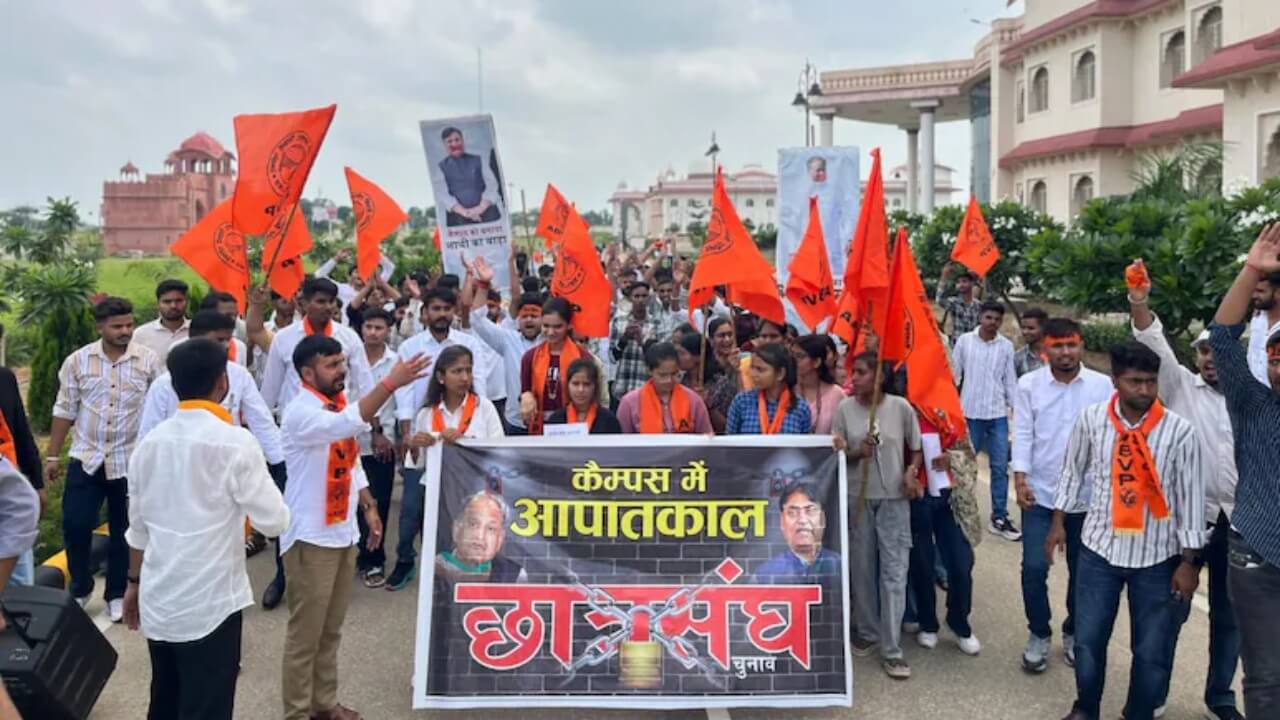प्रांत मंत्री अभिनव सिंह ने पूर्ववर्ती कांग्रेस सरकार पर आरोप लगाते हुए कहा कि 12 अगस्त 2023 को आंतरिक गुटबाजी के चलते छात्रसंघ चुनावों पर रोक लगा दी गई थी। यह कदम छात्रों के अधिकारों का हनन है। उन्होंने कहा कि अशोक गहलोत सरकार ने विश्वविद्यालयों में आपातकाल जैसी स्थिति बना दी थी और अब सोशल मीडिया पर चुनाव की बातें करके छात्रों को भ्रमित कर रही है।