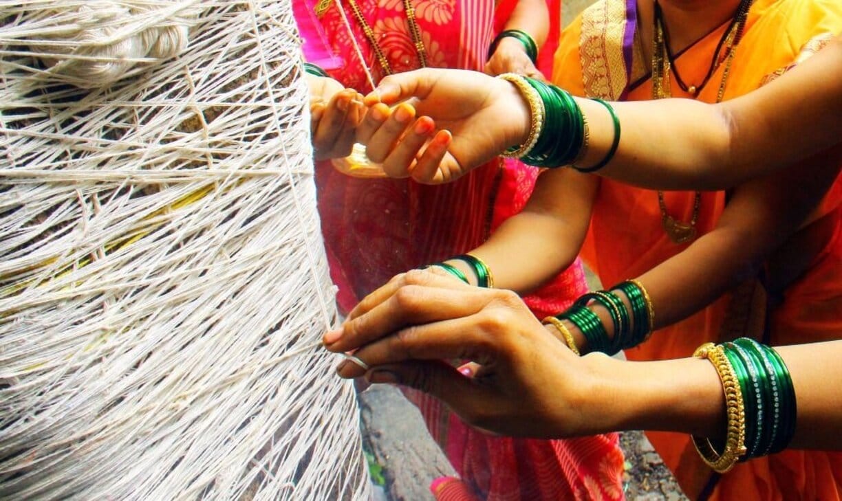- बांस की एक टोकरी में 7 तरह के अनाज रखें, इसे कपड़े के दो टुकड़ों से ढक लें।