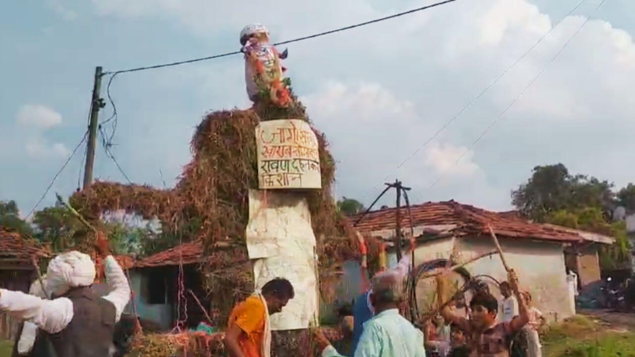 वहीं, मध्य प्रदेश के सीहोर जिले में भी किसानों द्वारा अनोखे तरीके से रावण दहन किया गया। दरअसल, यह घटना रामाखेड़ी गांव की है। जब किसानों ने अनोखे तरीके से अपने समस्याओं का निराकरण ना होने के विरोध में प्रदर्शन किया और अति दृष्टि के कारण खराब हुई सोयाबीन की फसलों का रावण बनाकर उसका दहन किया। इस दौरान लोगों ने पेड़ पर चढ़कर घंटी बजाई।