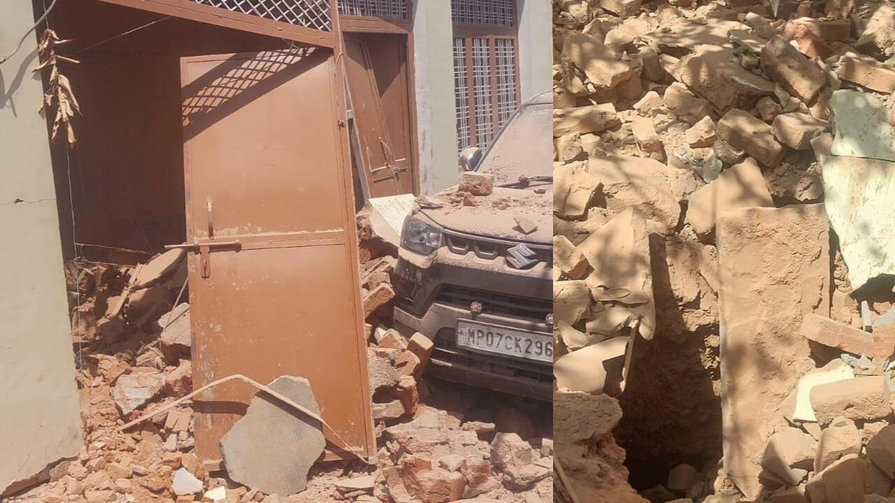 दर असल आज सुबह करीब 11 बजे जब मनोज अपनी पत्नी अंजू के साथ खाना खा रहे थे और दूसरे कमरों में उनके दोनों बेटे खाना खा रहे थे तभी एक तेज आवाज आई और धमाके के साथ उनके घर के दो कमरे ध्वस्त हो गए, घर के चौक में एक गहरा गड्ढा हो गया, परिजनों की माने तो जब ये घटना हुई तब आसमान से कोई हवाई जहाज या हेलीकॉप्टर के निकलने की आवाज सुनाई दी थी।