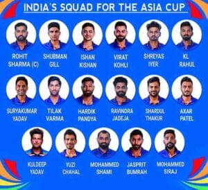 Asia Cup 2023 : एशिया कप की शुरुआत 30 अगस्त से होने जा रही है। जिसके लिए BCCI ने सोमवार को एशिया कप के लिए भारतीय टीम का ऐलान कर दिया है। रोहित शर्मा को टीम का कप्तान और हार्दिक पांड्या को उपकप्तान बनाया गया है। विकेटकीपर केएल राहुल, बैटर श्रेयस अय्यर, तेज गेंदबाज जसप्रीत बुमराह और प्रसिद्ध कृष्णा की वापसी हुई है। यह चारों खिलाडी की टीम में वापसी हुई है क्योंकि यह पिछले काफी समय से चोट की वजह से बाहर थे। वहीं स्पिनर युजवेंद्र चहल को टीम में जगह नहीं मिली है।