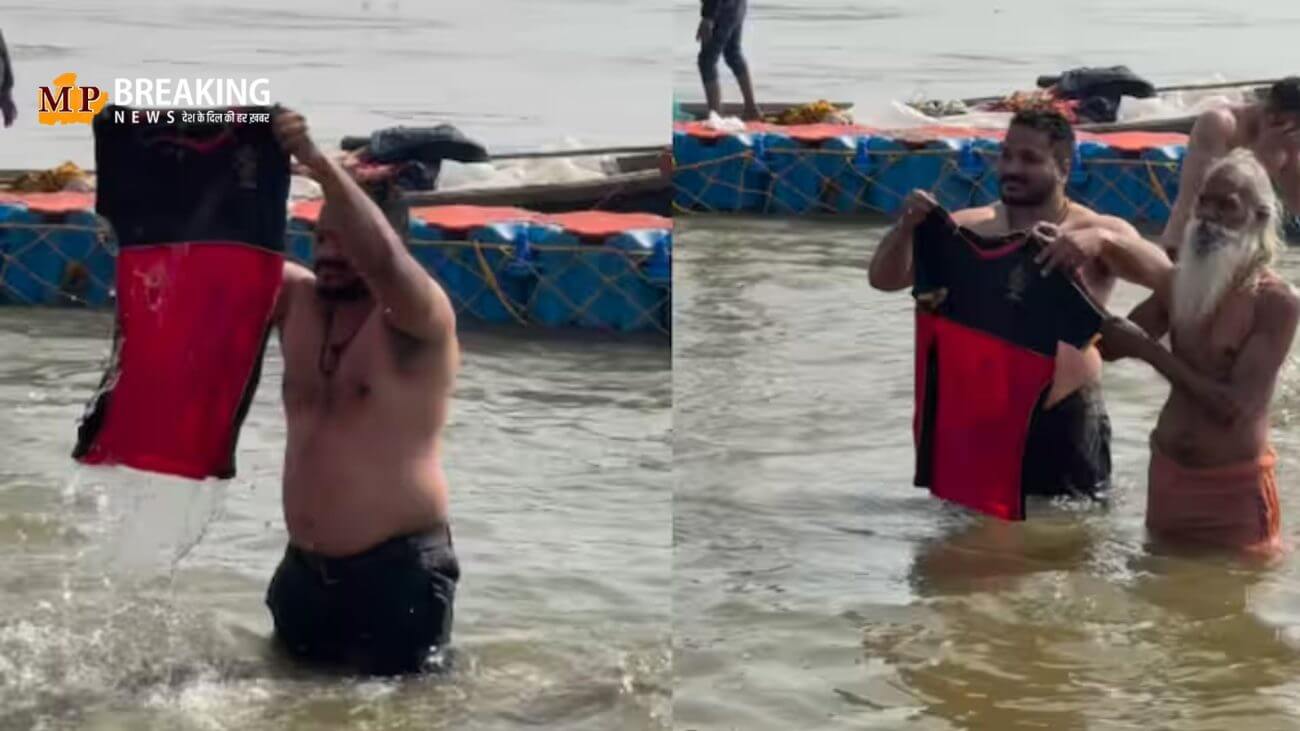 दरअसल, इस समय प्रयागराज में महाकुंभ चल रहा है। महाकुंभ मेले में RCB के फैन अपनी टीम की जीत की प्रार्थना के लिए पहुंचे हैं। सोशल मीडिया पर वायरल हो रहे इस वीडियो में फैन महाकुंभ में आरसीबी की जर्सी लेकर पहुंचा है और जर्सी के साथ डुबकी लगा रहा है। इस अनोखे फैन ने आरसीबी की जर्सी को तीन बार डुबकी लगवाई और प्रार्थना की कि टीम जल्द ही अपना पहला खिताब जीत जाए।