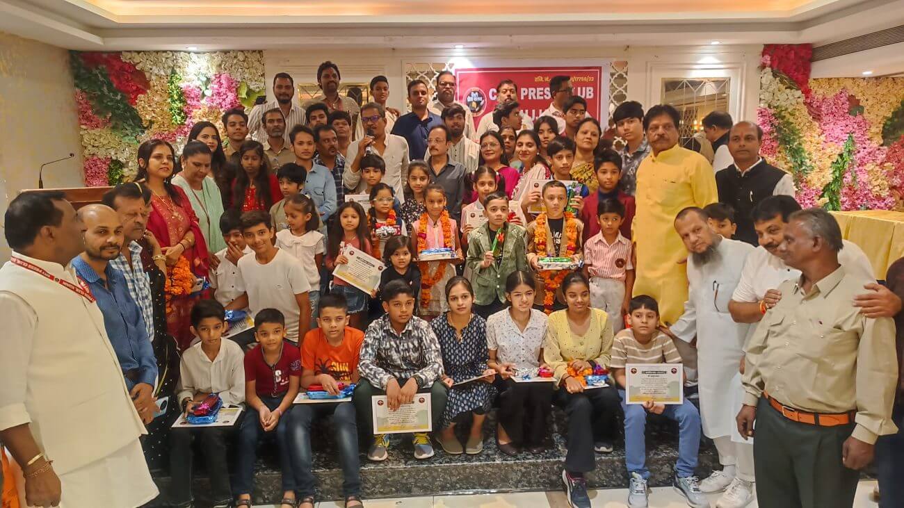 रविवार की दोपहर मुख्यमंत्री डॉ मोहन यादव ने होटल विक्रमादित्य के सभागृह में नगर के मीडियाकर्मियों के प्रतिभावान बच्चों का सम्मान किया । स्कूल से लेकर हायर एजुकेशन तक सफलता का परचम लहराने वाले बच्चे अपने माता-पिता के साथ मंच पर मुख्यमंत्री को पाकर प्रसन्न थे। 50 प्रतिभाशाली बच्चों के सम्मान समारोह में नगर के प्रिंट मीडिया, इलेक्ट्रॉनिक मीडिया और अन्य क्षेत्रों के पत्रकार बड़ी संख्या में उपस्थित है। सम्मान पत्र देकर बच्चों को पुष्पमाला पहनाकर अभिनंदन किया गया।