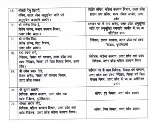 - उमेश प्रताप सिंह विशेष सचिव, पिछड़ा वर्ग कल्याण को वर्तमान पद के साथ निदेशक पिछड़ा वर्ग कल्याण तथा प्रबंध निदेशक पिछड़ा वर्ग वित्त विकास निगम का अतिरिक्त प्रभार दिया गया है।