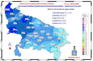 मंगलवार से उत्तर प्रदेश में पश्चिमी विक्षोभ का असर देखने को मिलेगा। 27-28 जनवरी 2026 को पश्चिमी और पूर्वी उत्तर प्रदेश हिस्से में मेघगर्जन और वज्रपात के साथ बारिश की संभावना जताई गई है। सोमवार (26 जनवरी) सुबह सहारनपुर, मुजफ्फरनगर, मेरठ, बागपत, बिजनौर, मुरादाबाद, रामपुर, बरेली, पीलीबंगा, लखीमपुर खीरी, बहराइच, श्रावस्ती, गोंडा, बलरामपुर ,सिद्धार्थनगर, गोरखपुर, संतकबीरनगर, महाराजगंज, कुशीनगर, बलिया और देवरिया में कोहरा छाया रहा।
