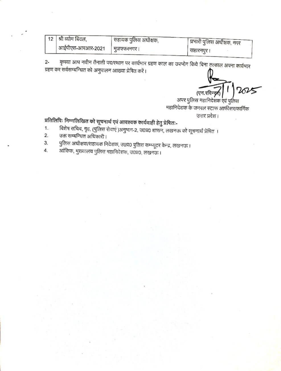 - IPS व्योम बिंदल को प्रभारी पुलिस अधीक्षक सहारनपुर नगर ।