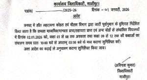 - कासगंज-फिरोजाबाद: 14 जनवरी तक प्री प्राइमरी से कक्षा 8वीं तक के सभी स्कूलों में अवकाश घोषित किया गया हैं।