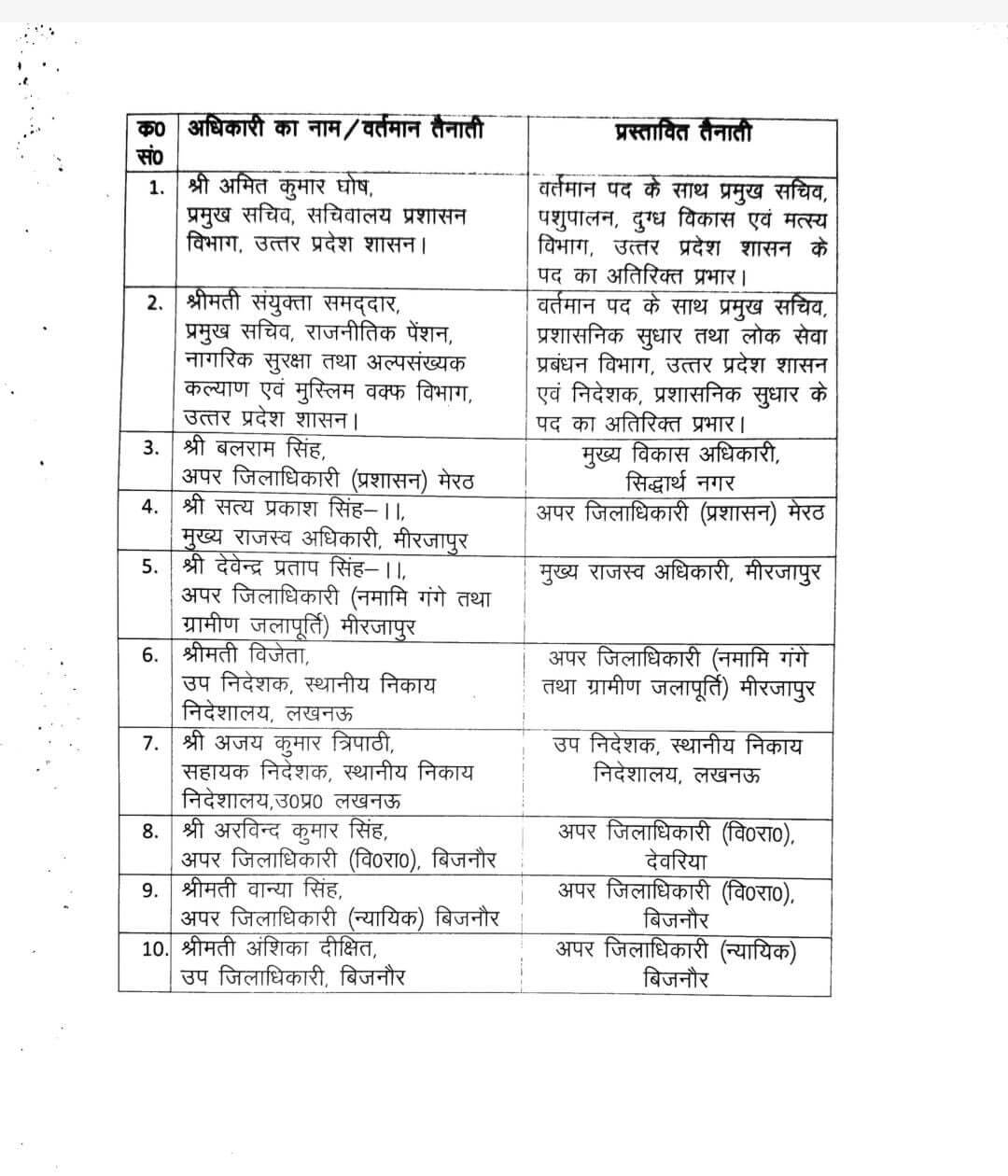 UP IAS PCS Transfer : नई तबादला नीति आने के बाद उत्तर प्रदेश में तबादलों का सिलसिला जारी है। आए दिन आईएएस से लेकर आईपीएस स्तर के अधिकारियों को इधर से उधर किया जा रहा हैं। इसी क्रम में शुक्रवार देर रात 2 सीनियर आईएएस और 8 पीसीएस अधिकारियों का तबादला किया गया है।