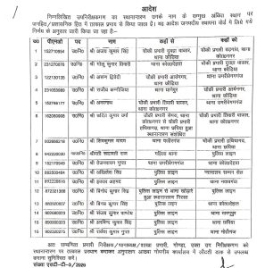 - उपनिरीक्षक विनोद कुमार सिंह का पुलिस लाइन से थाना खोड़ारे हुआ तबादला निरस्त करते हुए पुलिस लाइन में ही बने रहने के आदेश किए हैं।