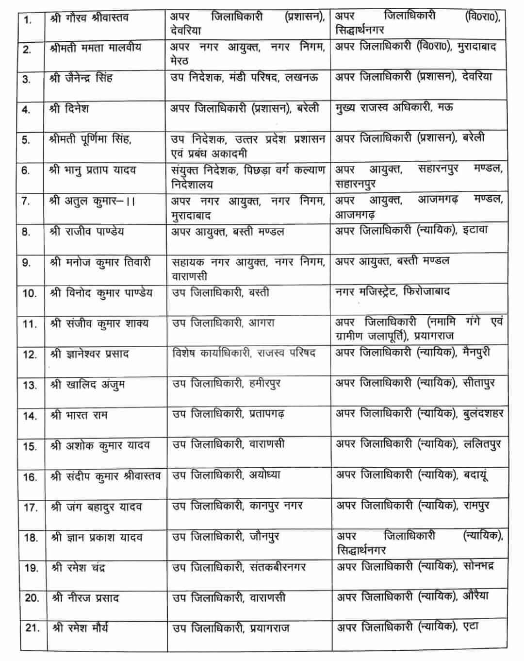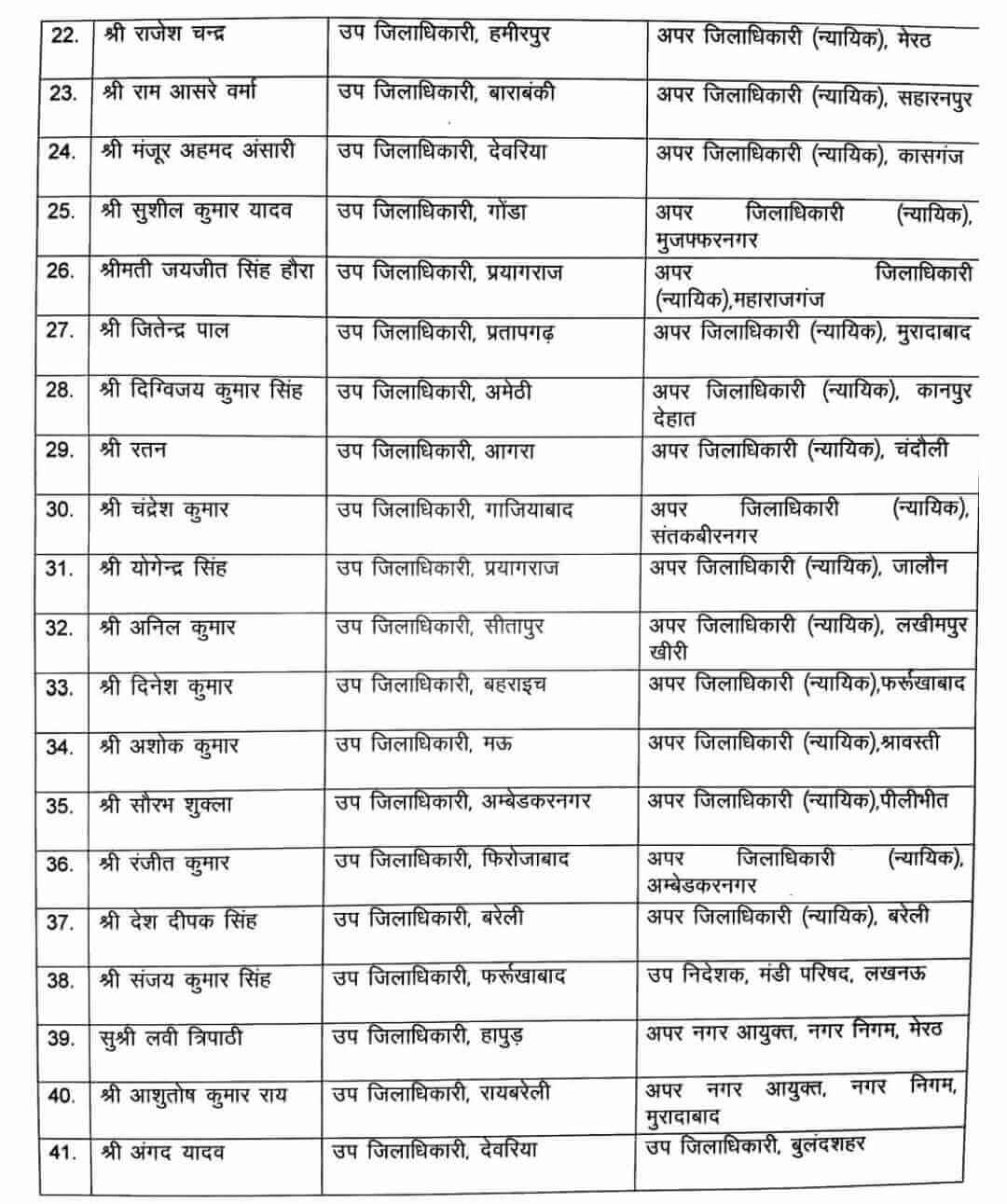 - आगरा के उपजिलाधिकारी संजीव कुमार शाक्य को अपर जिलाधिकारी प्रयागराज।